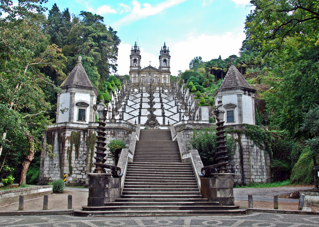 + O Bom Jesus do Monte, com a sua mata, a que se chega por uma simbólica escadaria, e onde além da penedia predomina a arquitectura religiosa.